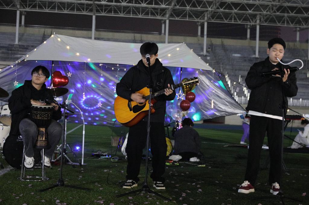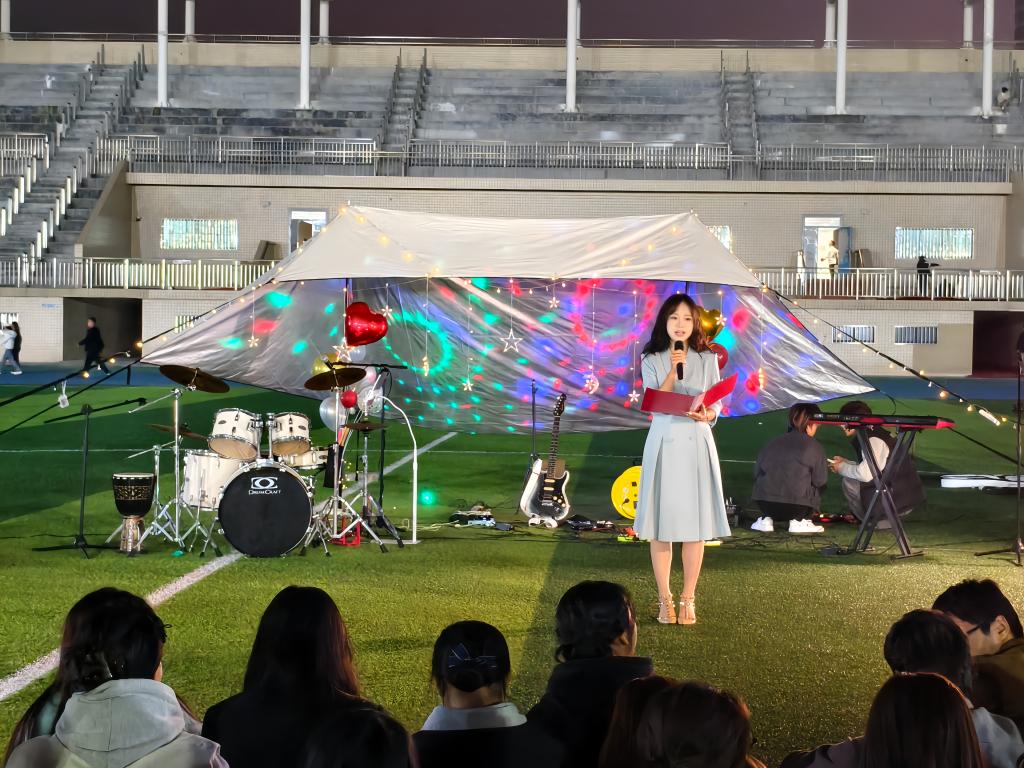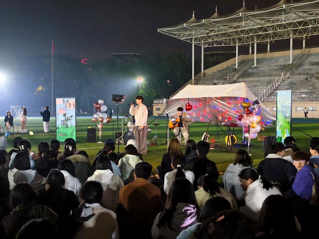 10月29日傍晚,学院操场在暮色中焕发生机,“平安大道210号”草坪音乐节浪漫启幕。15个节目以多元艺术形式点燃青春热情——《我怀念的》《我只在乎你》唤醒集体记忆,《北派》《Is this love》释放青春能量;《玫瑰少年》引发深度共鸣,《陪你去流浪》传递温暖力量;说唱的犀利、乐队的澎湃、舞蹈的灵动、歌曲的深情次第绽放,各院系学子打破专业壁垒,用才华与热爱共织这场听觉盛宴。