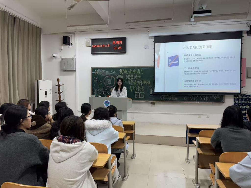 倡导健康生活,营造“无烟”校园。各班团支书借助新媒体手段,播放“无烟校园,健康同行”主题宣传片,呼吁同学们远离烟草,共同营造清新健康的校园环境。
