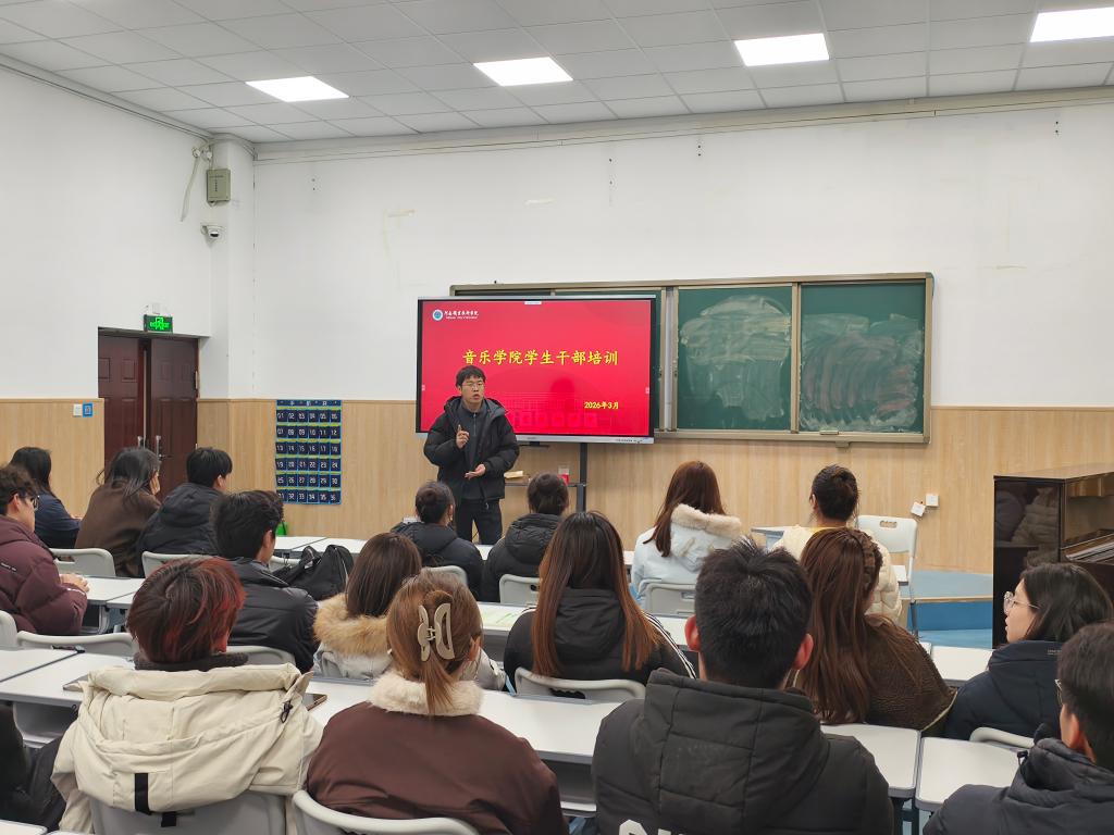 3月4日晚,音乐学院新学期学生干部培训会在B101教室举行,各班级及团学会学生干部参加培训,旨在强化学生干部队伍建设,提升履职能力,更好发挥桥梁纽带作用,为新学期学生工作开好局、起好步。