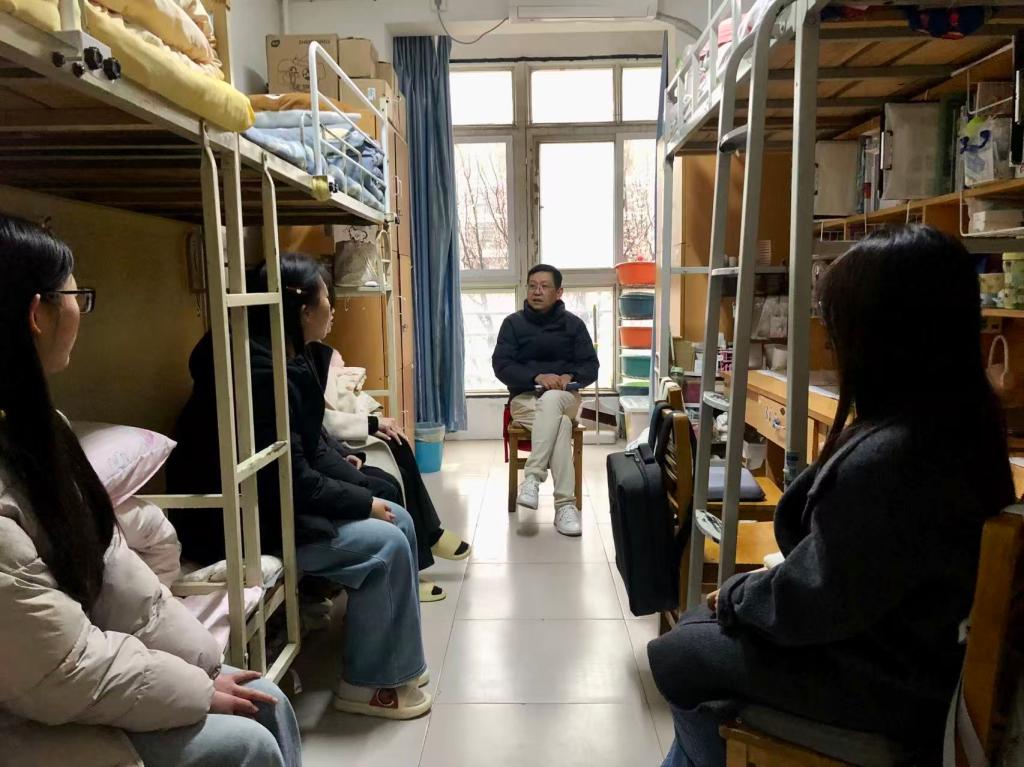 此次走访以学生工作调研为核心,以近距离访谈为载体,老师们与同学们围坐畅谈,主动倾听同学们在宿舍生活、内务整理中的难点与困惑,耐心分享实用的收纳技巧,鼓励大家互帮互助、团结友爱,共同打造有温度、有凝聚力的宿舍“小家”。访谈过程中还重点询问了同学们的学习进度、生活需求及心理状态,细致了解大家在校园生活中遇到的实际问题,叮嘱同学们合理安排作息时间,平衡好学习与生活的关系,遇到困难要及时向学院、辅导员求助,学院始终是同学们最坚实的后盾。同学们敞开心扉、积极交流,纷纷表示会牢记叮嘱,规范自身言行、做好内务整理,以良好的精神状态投入到学习和生活中,不辜负学院的关怀与期望。