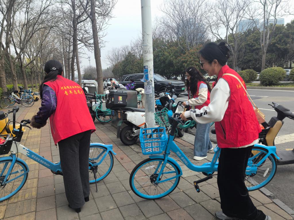 为深入贯彻落实习近平总书记关于志愿服务的重要论述和重要指示批示精神,大力弘扬志愿精神,推动新时代文明实践中心高质量发展,促进文明行为养成,培育时代新风新貌,根据学校“学雷锋·文明实践我行动”主题活动统一安排部署,3月19日中午,音乐学院钢琴教研室、器乐教研室联合组织教师志愿者,在学校东门外开展共享单车规范整理志愿服务活动。