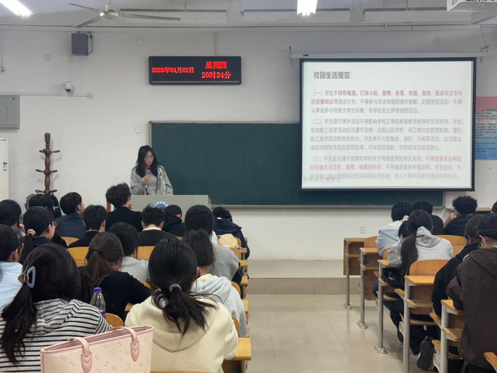 班会现场,辅导员以生动详实的讲解,为全体学生送上纪律“必修课”。在日常管理上,聚焦课堂考勤、请假销假、仪容仪表等细节,强调自律习惯养成,引导同学们以严谨态度对待专业学习与校园生活;针对宿舍安全,重点剖析违规用电、消防隐患、晚归、夜不归宿等风险,叮嘱同学们筑牢宿舍安全“防火墙”;围绕考试纪律,着重阐释诚信应考的重要意义,以“以案释纪、以案示警”的方式,让同学们深刻认识到诚信是艺术品格的底线,坚决杜绝作弊行为;在网络行为规范方面,引导同学们理性上网、文明发声,自觉抵制网络谣言、不良信息,遵守网络道德与法律法规,展现音乐学子的良好素养。