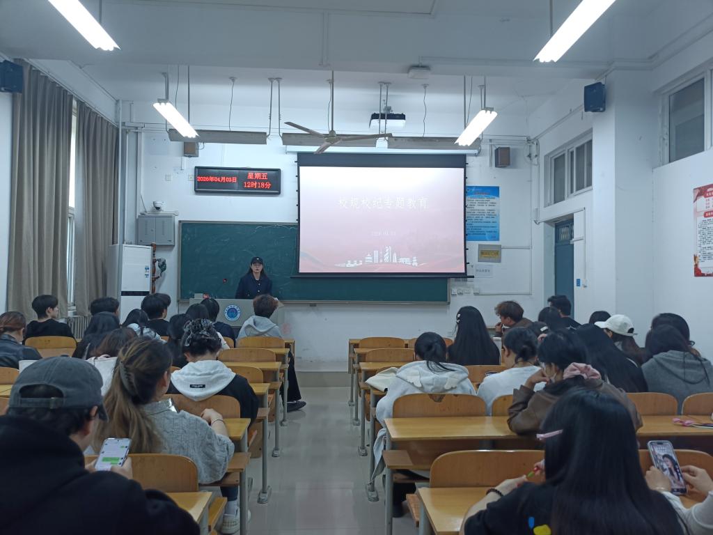 为进一步强化学生纪律意识,规范日常行为准则,涵养优良学风,音乐学院于4月1日至3日全覆盖开展校规校纪专题教育主题班会。辅导员老师精心组织,确保专题教育入脑入心、落地见效。