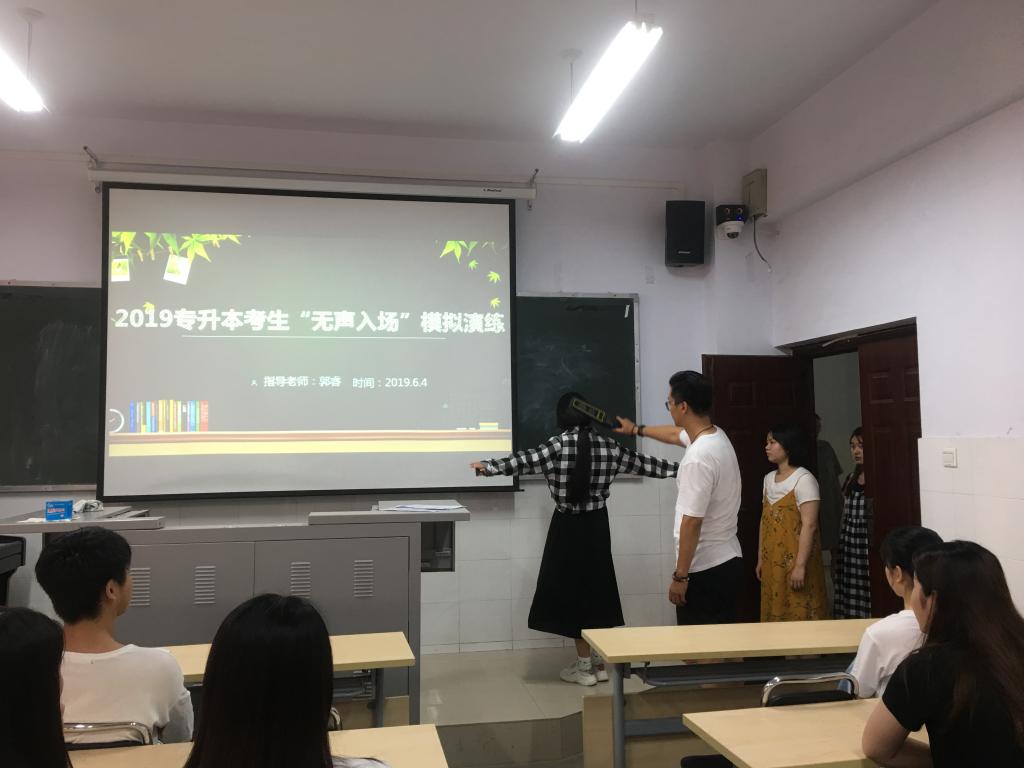 按照河南省招生办公室《关于深入开展诚信教育加强高考安全工作的通知》(豫招普〔2019〕10号)及郑州市招生考试办公室《关于深入开展诚信教育 加强高考安全工作的通知》(郑招办〔2019〕13号)要求,结合我院实际,音乐学院于2019年6月4日下午4点在音乐楼A208教室举行2019专升本考生“无声入场”模拟演练,音乐学院2019年参加专升本的77名学生除5人特殊情况外其他72人全部到场。
